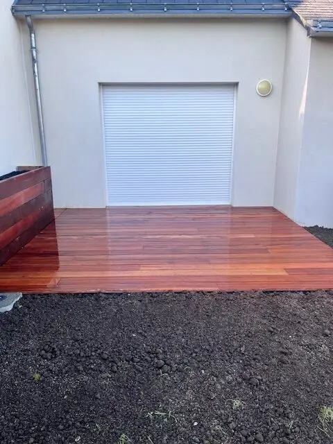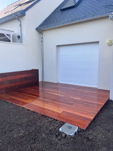 À Saumur, l’entreprise Flecheau Paysage est intervenue pour la réalisation d’une terrasse bois en Muiracatiara et d’une jardinière en traverse bois Azobé.